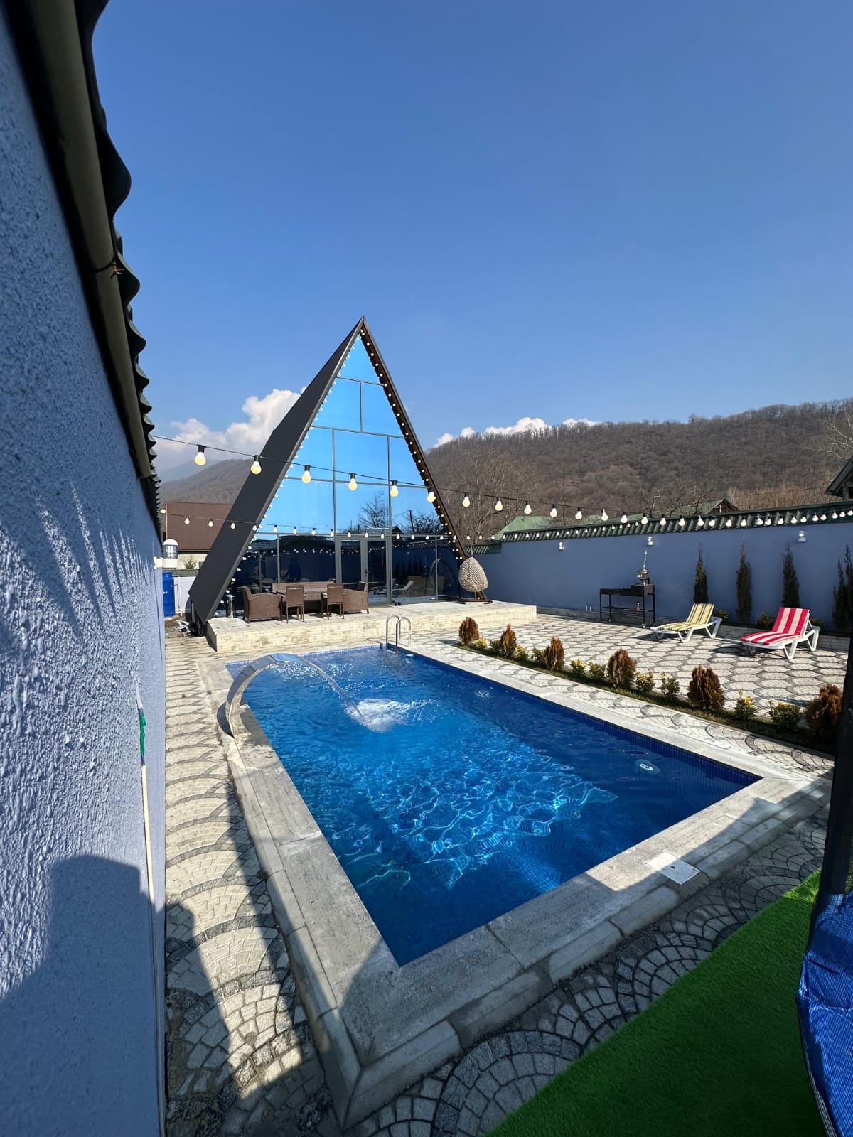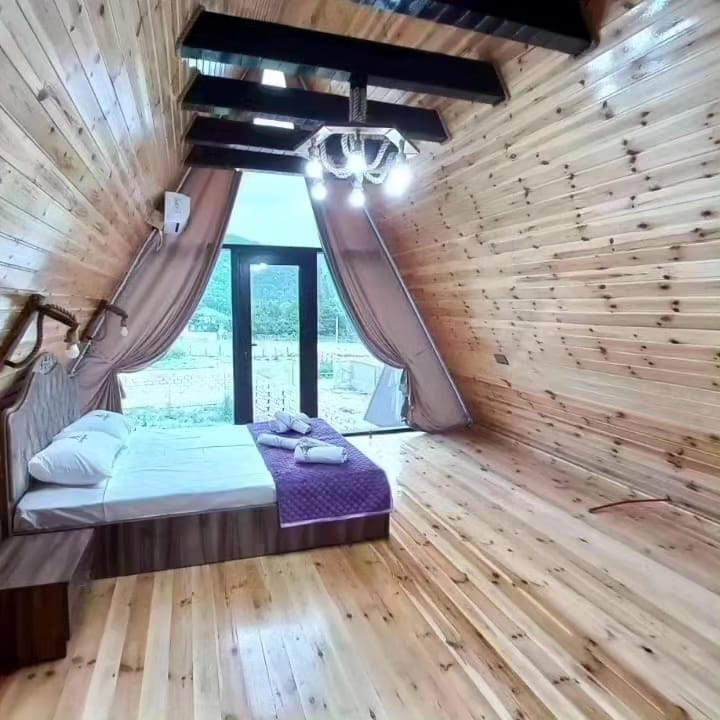Qəbələ rayonu, Vəndam qəsəbəsi, məşhur 7 Gözəl Şəlaləsinin yaxınlığında yerləşən 2 mərtəbəli, 3 yataq otağı, 3 sanuzel və 1 studya-mətbəxdən ibarət, filterli ISTI HOVUZlu LUX və VİP A-FRAME günlük kirayə verilir. 8+3 nəfər rahatlıqla qala bilər. A-FRAME ərazi baxımından bütün infrastrukturlara və istirahət mərkəzlərinə yaxındır. Müştərilərimizin məmnuniyyəti və yüksək səviyyədə istirahət etməsi üçün Smart TV, yüksək sürətli internet, masa üstü oyunlar, masa+stullar+çətir, yelləncək, evdə istifadə üçün lazıması bütün avadanlıqlar və əşyalar, somavar, manqal+şişlər var. Onuda qeyd edim ki, balaca qonaqlarımız üçündə ayrıca bir uşaq əyləncə guşəsi mövcuddur. Bura daxildir velosiped, scooter, uşaq üçün yelləncək və kaçalka və s. Otaqlar və pastellər qonaq çıxdıqdan dərhal sonra növbəti qonaq daxil olanacan mütəmadi olaraq təmizlənir. Həftə sonları qiymət fərqlidir. Təbiətin qoynunda, gözəl dağ mənzərəli bu A-Frame-də Sizində xoş xatirələriniz olsun...