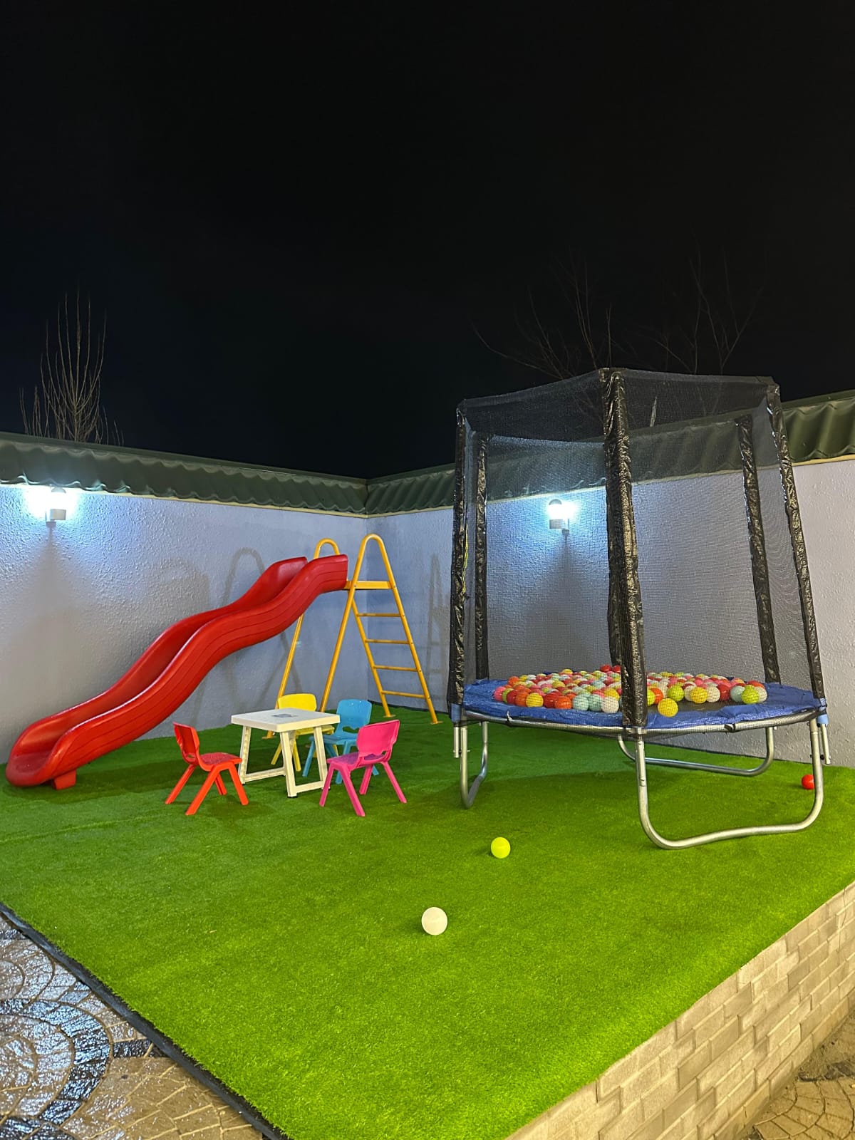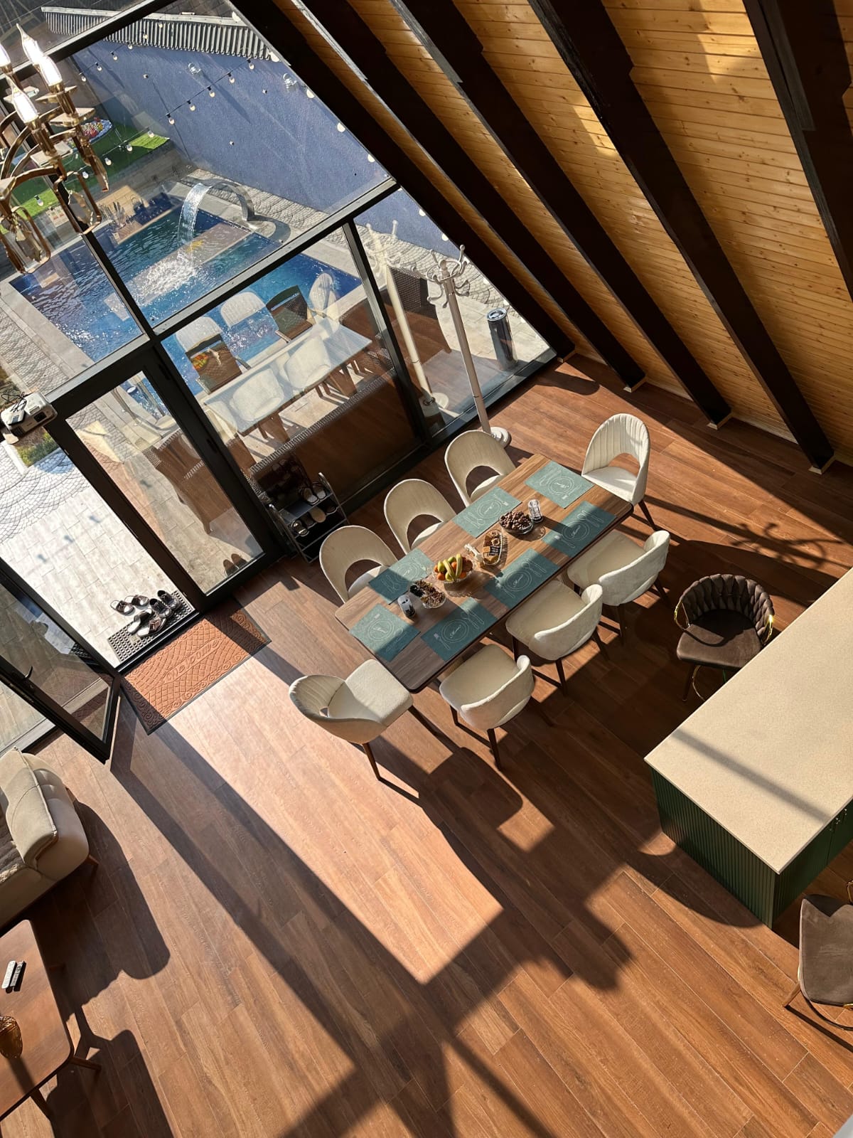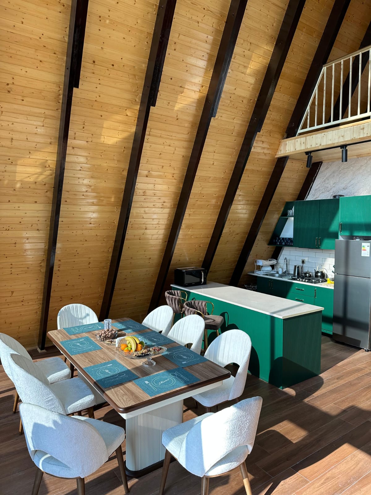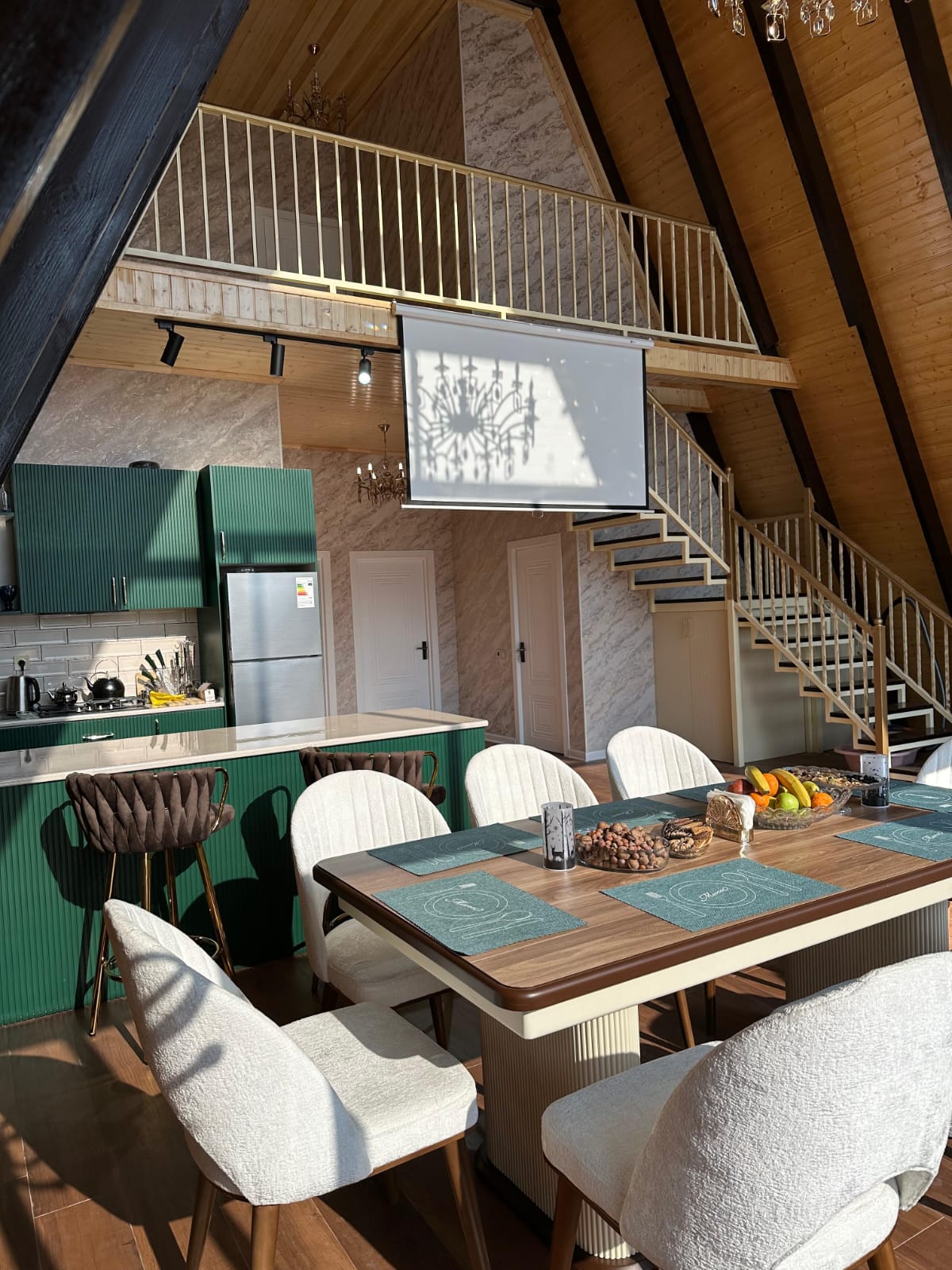 Qəbələnin möhtəşəm təbiətində yerləşən bu unikal A-Frame rahatlıq və dincliyi bir araya gətirir. Üç yataq otağı var və hər otaqda xüsusi vanna otağı var. Müasir studiya mətbəxində istədiyiniz yeməyi hazırlayın. Yüksək çıxışlı Wi-Fi, kinoproyektor, uşaqlar üçün oyun meydançası, geniş bağça, stol və stullar, samovar, manqal və yelləncək sizin zövqünüzü oxşayır. Bütün fəsillərdə istifadə edə biləcəyiniz isti hovuzla bayramınızı unudulmaz edin. Ailəniz və dostlarınızla mükəmməl bir tətil üçün bizi seçin.