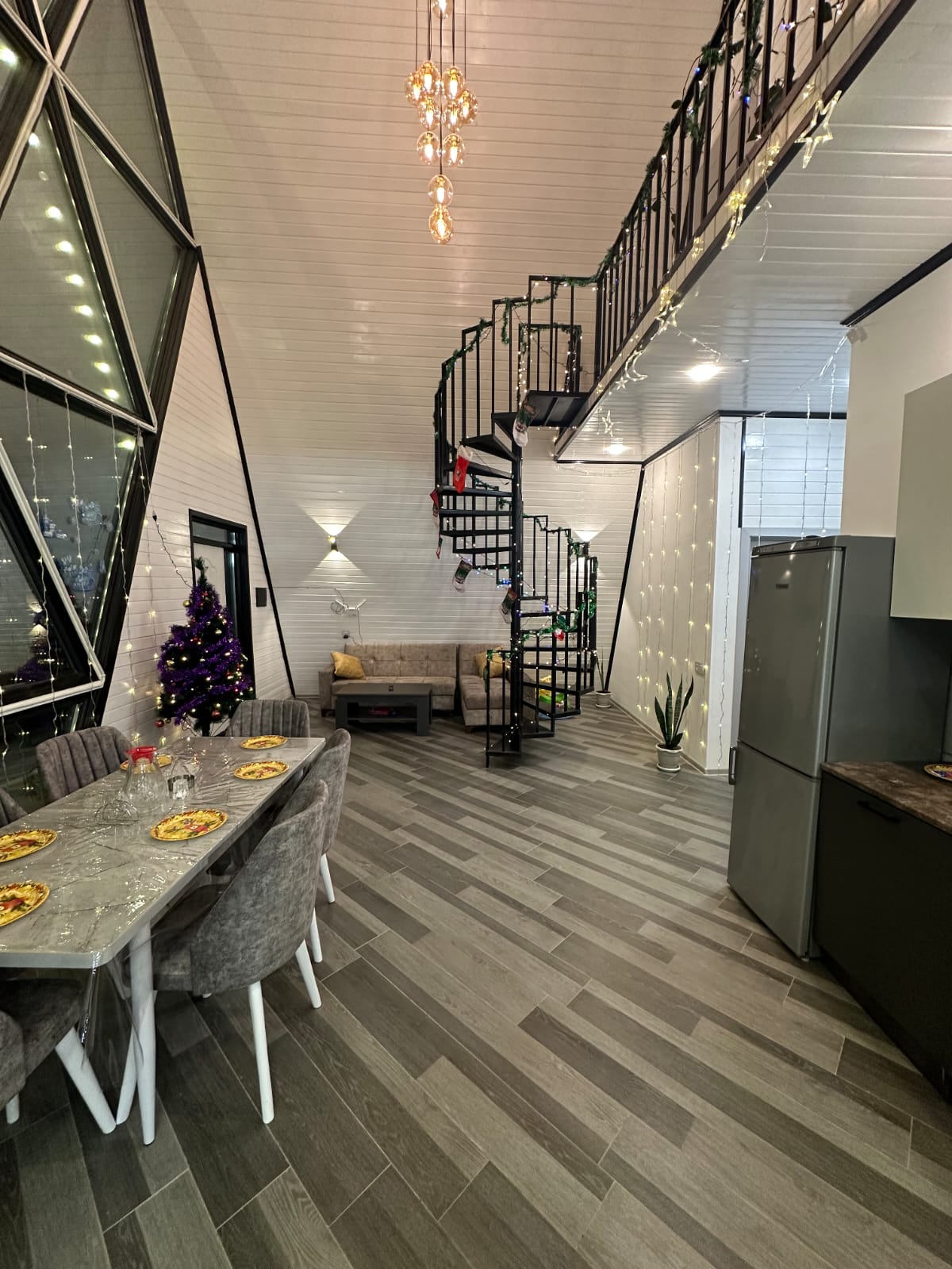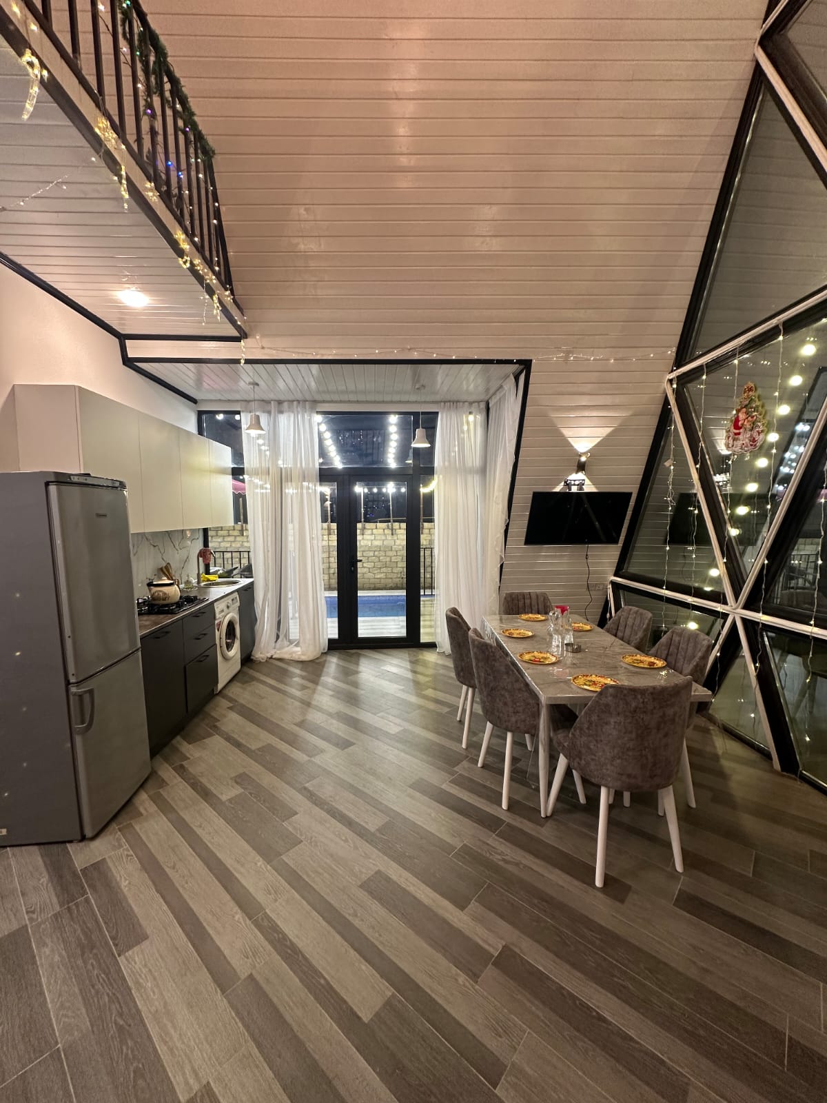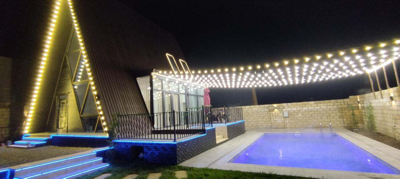 Qəbələ rayonu, Vəndam qəsəbəsi, məşhur 7 Gözəl Şəlaləsinin yaxınlığında yerləşən 2 mərtəbəli, 3 yataq otağı, 2 sanuzel və 1 studya-mətbəxdən ibarət, 9metre uzunu 3 metrə eni olan filterli ISTI HOVUZ LUX A-FRAME günlük kirayə verilir. 9 nəfər rahatlıqla qala bilər. A-FRAME ərazi baxımından bütün infrastrukturlara və istirahət mərkəzlərinə yaxındır. Müştərilərimizin məmnuniyyəti və yüksək səviyyədə istirahət etməsi üçün Smart TV, yüksək sürətli internet, masa üstü oyunlar, masa+stullar+çətir ,evdə istifadə üçün lazıması bütün avadanlıqlar və əşyalar, somavar, manqal+şişlər var. Onuda qeyd edim ki, balaca qonaqlarımız üçündə ayrıca bir uşaq əyləncə guşəsi mövcuddur. Otaqlar və pastellər qonaq çıxdıqdan dərhal sonra növbəti qonaq daxil olanacan mütəmadi olaraq təmizlənir. Həftəsonu qiymətləri fərqlidir. Təbiətin qoynunda, gözəl dağ mənzərəli bu A-Frame-də Sizində xoş xatirələriniz olsun...